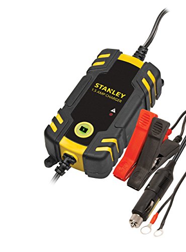The Stanley Battery Maintainer is a high frequency maintainer with hanging hook and mounting for easy use. Includes plastic covered battery clamps, O-rings and DC plug. Magnetic back makes it easy to stick to hood. Coated for moisture, dust and oil protection.